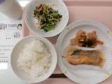<献立> ごはん 魚のみそマヨネーズ焼き おひたし 五目豆 牛乳 <食材> ホ...