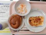 <献立> 黒砂糖パン ムサカ フルーツヨーグルト 牛乳 <食材> 豚肉(熊本)...