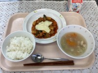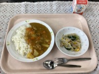 (献立)チキンカレーライス青菜のソテー牛乳(メモ)八幡小の給食の中でも一番人気と...