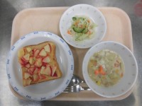 フレンチトースト ポークビーンズ マカロニサラダ 牛乳