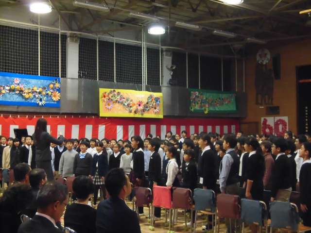 子どもたちは立派な態度で式に臨み、大きな声の呼びかけと心を込めた歌でお祝いの気持ちを表しました。