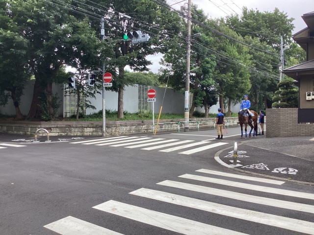 本日の警視庁騎馬隊のお馬さん 公開日 2025/07/15 更新日 2025/07/15 今日のできごと ナイドルフ改め「奏馬(そうま)号」でした。曇天の下、落ち着いて立ってくださいました。ありがとうございます。夏休み間近、交通安全に気をつけてまいりましょう。