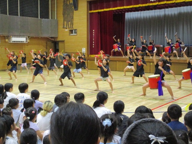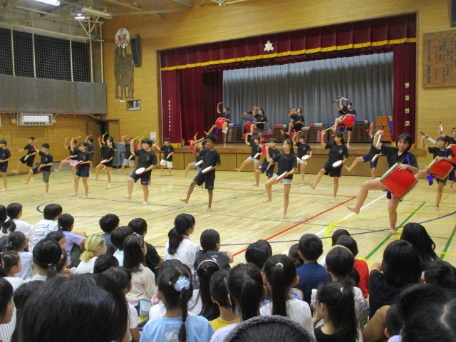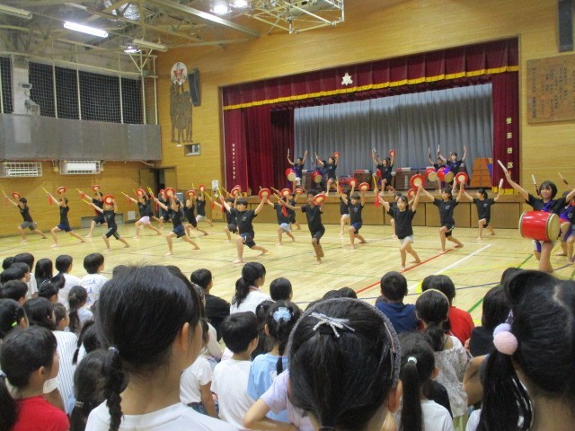 エイサーの発表~ 公開日 2025/07/16 更新日 2025/07/16 今日のできごと 夏休みに、新宿エイサー祭りに出演する用賀エイサーチームが、体育館で演舞を披露しました~校内のみんなが体育館に集まってチームの踊りを参観しました~日々仲間とともに練習に励む子どもたちです・・・練習の成果が発揮できるよう、みんなで応援していま~す!!