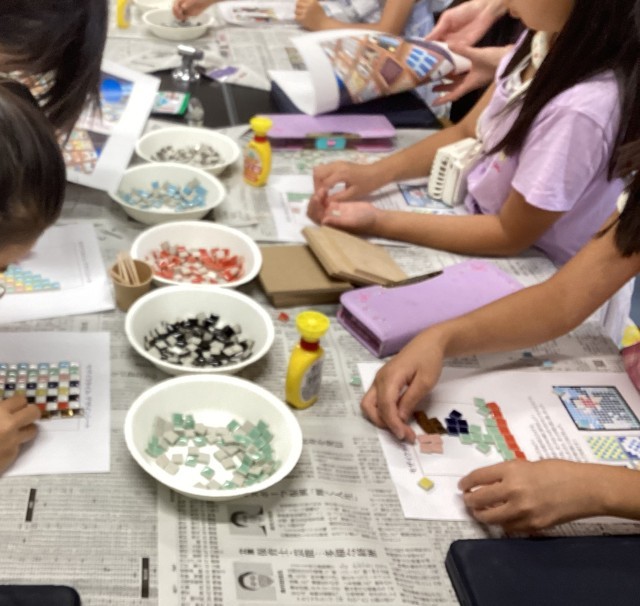 LIXILさんによるモザイクタイル工作教室が開催されました。タイルを選ぶ子どもたちの表情が輝いていました。