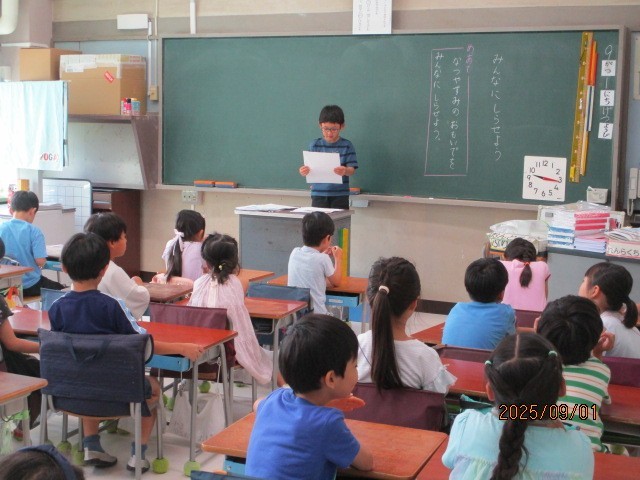 夏休みにしたことをみんなに知らせる活動です。聞きやすい声の大きさ速さで話しました~