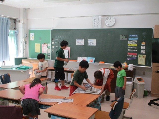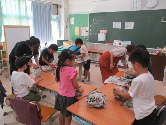 だるまづくり~わかたけ学級 公開日 2025/09/02 更新日 2025/09/02 今日のできごと わかたけ学級の低学年グループの図工です。新聞紙を丸めて、テープで止めて、大きな塊に・・・みんなでだるまづくりに挑戦中でした~