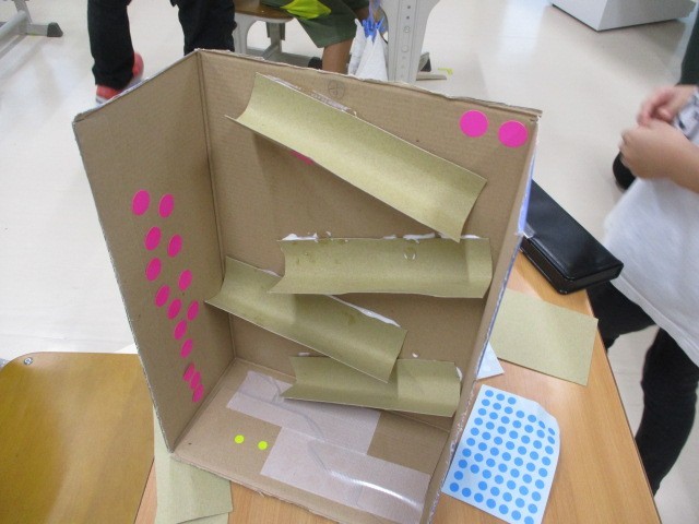 身近にある材料を使って、ビー玉を転がす道づくりに挑戦しました~