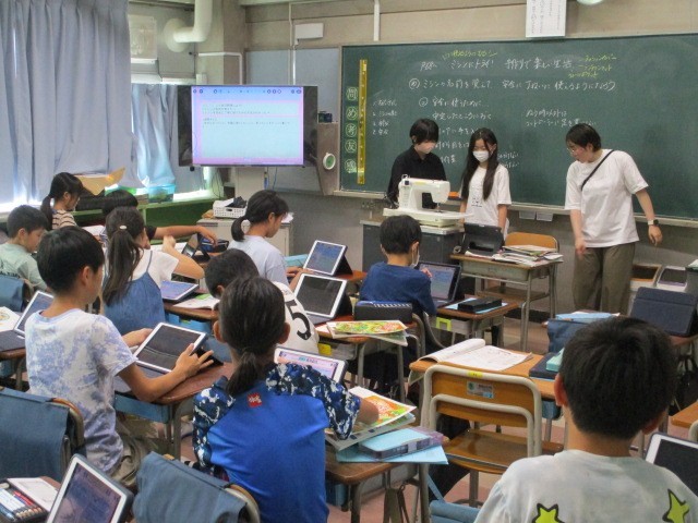 ミシンにトライ~5年 公開日 2025/09/08 更新日 2025/09/08 今日のできごと 家庭科のミシンの学習です。ミシンのそれぞれの場所の働きと名前を確認しました。今後、ミシン縫いの良さを見付け、作品の製作の学習へと進んでいきます・・・。