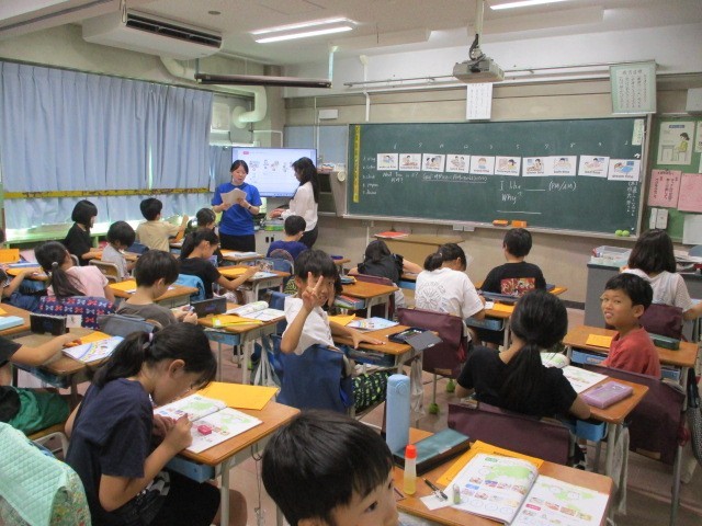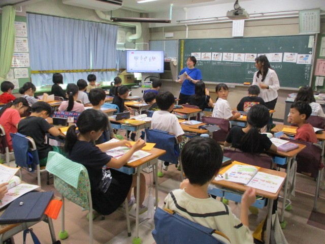 外国語活動~4年 公開日 2025/09/11 更新日 2025/09/11 今日のできごと 英語担当の先生とALTの先生と一緒に外国語活動です。英語での表現の仕方とともに、伝えあう聴きあう活動を通して、コミュニケーション力アップも図っています~