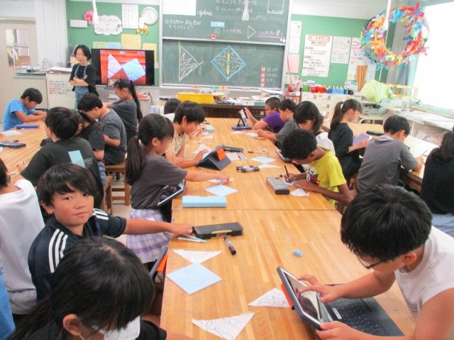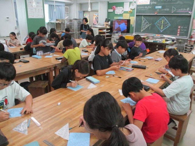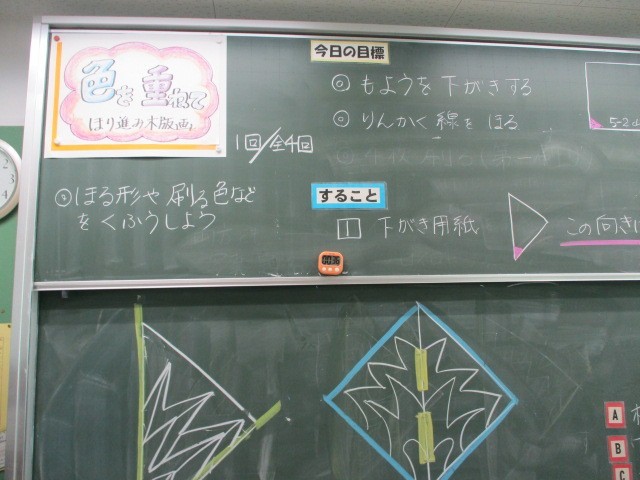 図工の版画の学習です。掘る形や色を工夫していきます。