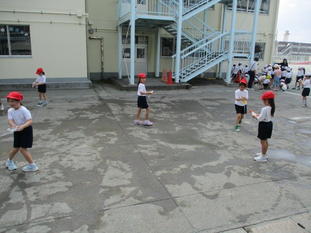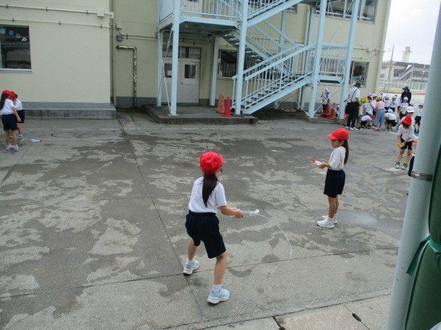 水で遊ぼう~1年 公開日 2025/09/16 更新日 2025/09/16 今日のできごと 水を使って遊ぶ活動が始まりました~。身のまわりにあるものを使って、工夫しながら、楽しんで活動していましたね~
