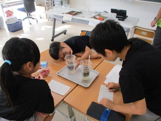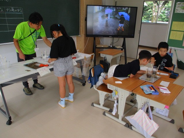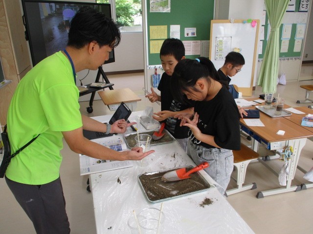 水のしみこみ方~わかたけ学級 公開日 2025/10/03 更新日 2025/10/03 今日のできごと 理科の水のしみこみ方についての学習です。粒の大きさによってどのように水がしみこんでいくのか、実験に取り組み、実際のつぶの大きさを触って確認していました~