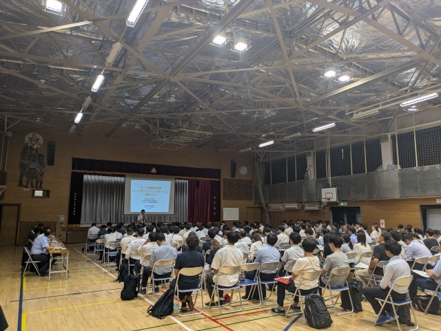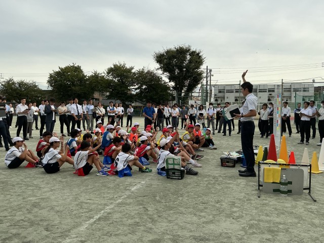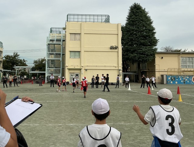 フラッグフットボール 5年 公開日 2025/10/08 更新日 2025/10/08 今日のできごと 本日は世田谷区教育研究会の合同研究日でした。本校では5年生の体育「フラッグフットボール」(ロサンゼルス2028オリンピックから新たに加わる競技です)の授業を基に世田谷区の教員の学びを深めました。子どもたちはチームの作戦を話し合い、試行錯誤しながら走ったりパスをしたりしてボールを運びました。 +1
