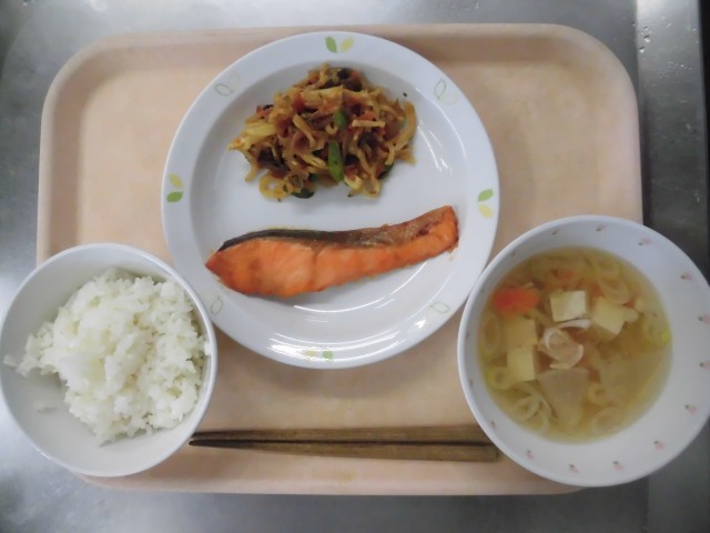 ごはん 鮭の香味焼き じゃがいものきんぴら 野菜のすまし汁 牛乳