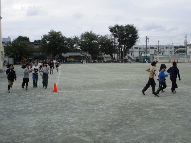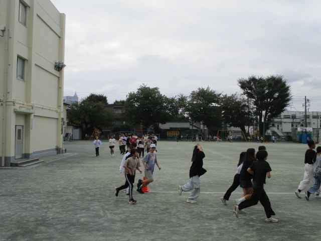 5,6年生は10月末の区立総合運動場での持久走大会に向け、朝の時間を活用して自己の取組目標を決めて前向きに取り組んでいます。