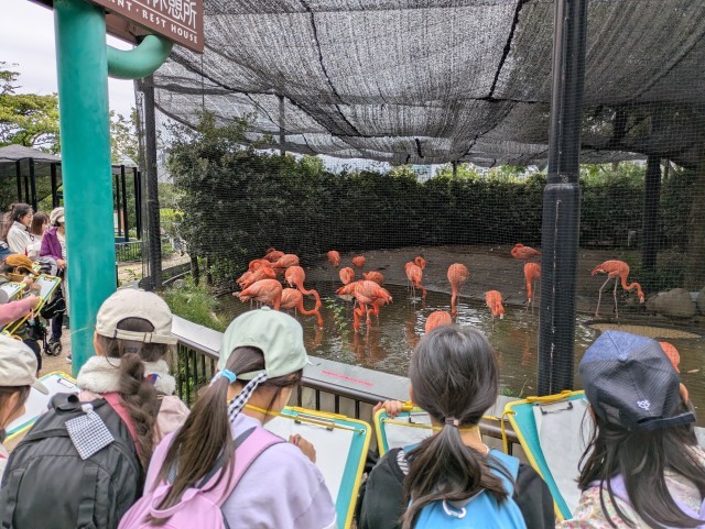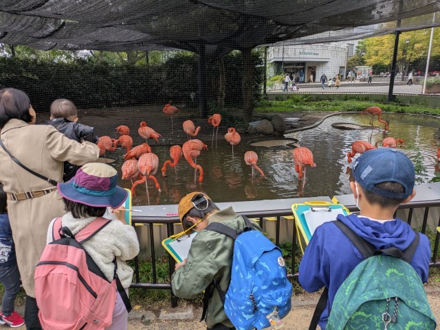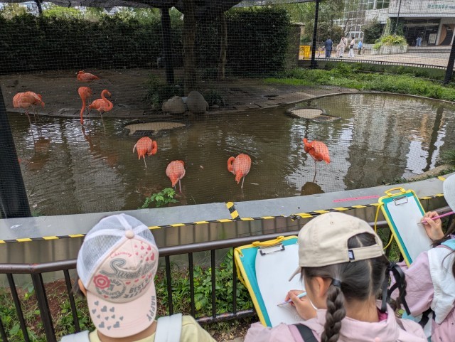 グループ別の動物のスケッチが始まりました。羽根の裏の様子も観察しています。
