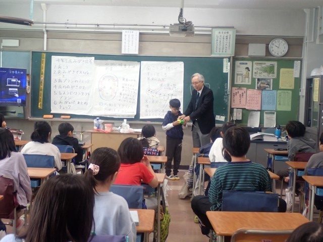 歯みがき教室 4年 公開日 2025/10/29 更新日 2025/10/29 今日のできごと 歯科校医の先生による歯みがき教室です。健診のときに磨き残しが多い場所を教えていただいたり、歯みがきの順番や方法について丁寧に教えていただいたりしました。