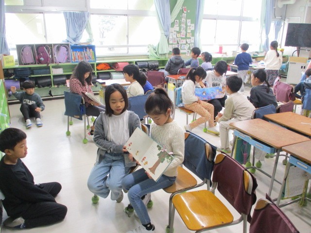 今度はグループで1年生に読み聞かせをするために、役割分担をして練習に取り組みました~