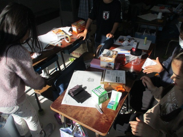 身近な材料を使って、どんなおもちゃが作れそうか考え、実際に作る活動に挑戦です~