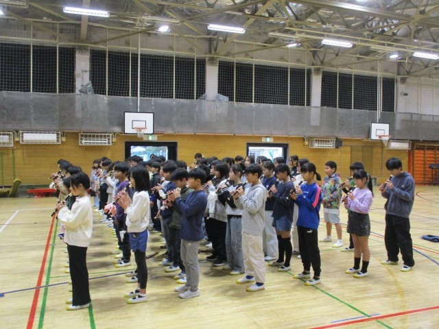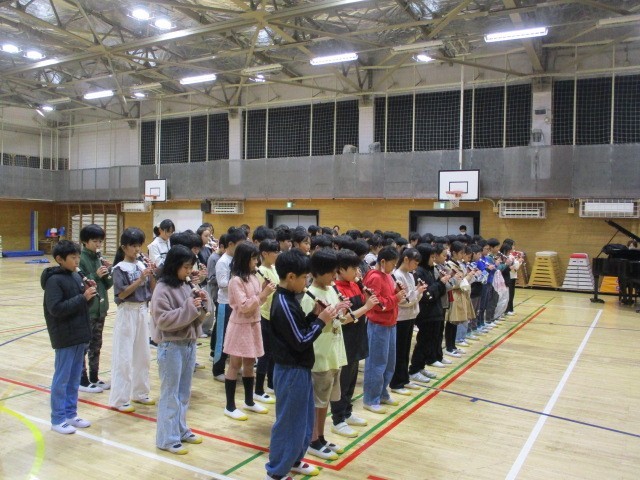 音楽朝会~ 公開日 2025/11/25 更新日 2025/11/25 今日のできごと 感染症拡大予防に向け、本日は体育館に全校で参集せずに、放送を使って音楽朝会を開きました~今日は5年生がリコーダー演奏を披露しました。5年生のすてきな演奏が体育館に響きわたる、朝の幕開けとなりました~