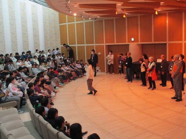 講堂で各グループで説明をしてくださる鑑賞リーダーの皆様とご挨拶~