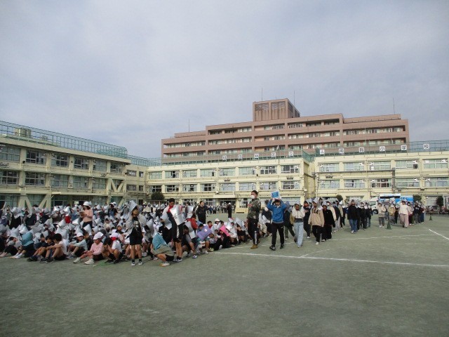 避難訓練~ 公開日 2025/12/11 更新日 2025/12/11 今日のできごと 地震発生の想定で、避難訓練を行いました~校庭で体育をしていた児童は、校舎の窓ガラスが落ちてこない、校庭の真ん中で自身の揺れを静かに待ちました~地震が納まった後、「お・・おさない」「か・・かけない」「し・・しゃべらない」「も‥もどらない」の約束を守って校庭に避難しました~ 自分の身を自分で守るために、訓練が大事ですね。みんなで静かに避難でき、立派でした・・・・