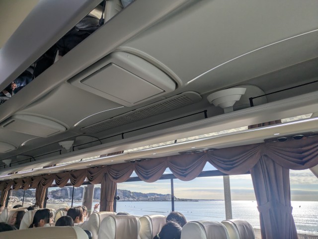 社会科見学 6年 公開日 2025/12/18 更新日 2025/12/18 今日のできごと 車窓からの景色も大事な社会科見学です。鶴岡八幡宮、小町通り、江ノ電、下馬の交差点、相模湾等々の説明をガイドさんから伺っています。