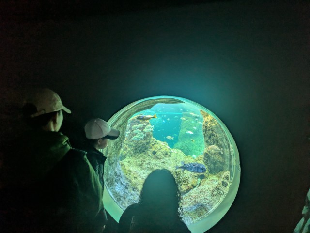 「シラスサイエンス」2014年4月から世界初となる繁殖シラスの常設展示を開始しています。ふ化数日後のシラスを食い入るように見つめています。その他の工夫された展示もよく見ています。