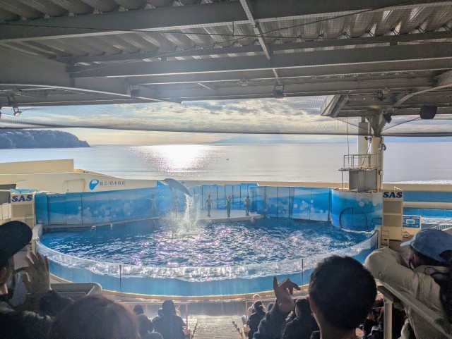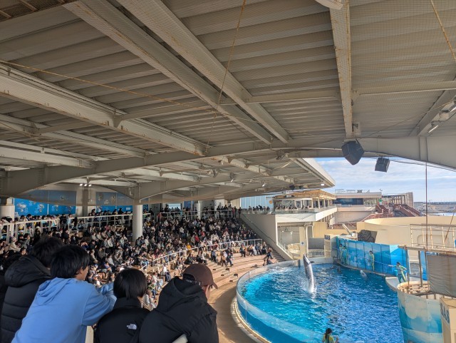 社会科見学 6年 公開日 2025/12/18 更新日 2025/12/18 今日のできごと 最後にイルカショーを見ることができました。子どもたちのまなざしはイルカにくぎ付けです。ジャンプに成功したらガッツポーズする姿も見られました。実際に自分の目で見て学んだ貴重な経験でした。