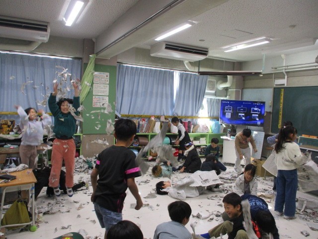 新聞紙を使って造形遊びを楽しみ、楽しく活動しました~