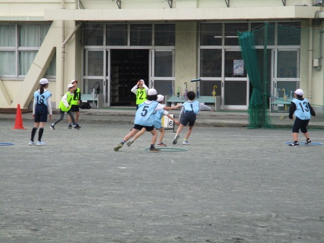 フリスビーを投げたり捕ったりする基本操作や、攻守を交代する易しいゲームに挑戦しました~
