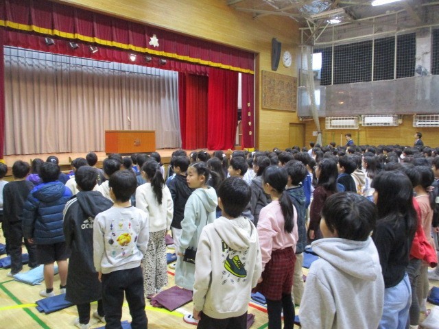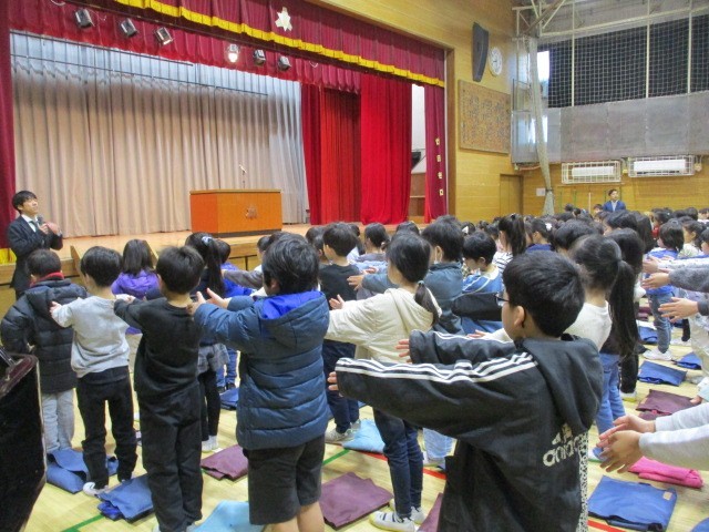 体育館に参集して3学期の始業式を行いました~
