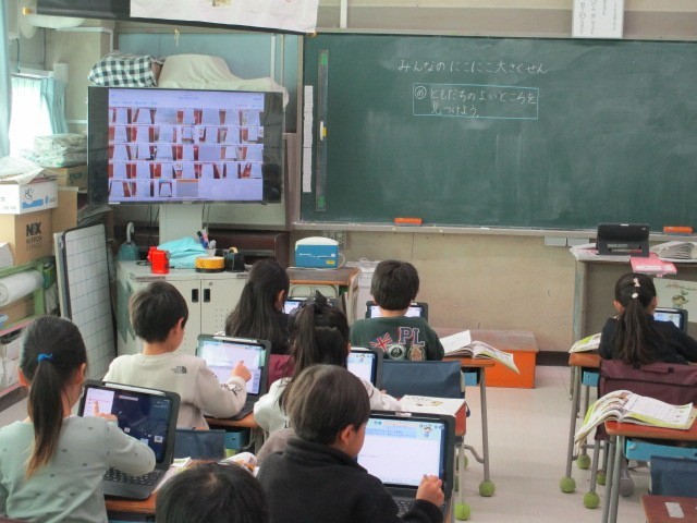 生活科の学習です。冬休み中に取り組んだお手つだいを振り返り、友達の良いなと思うところを見付けてメッセージを送る活動に取り組んでいました~
