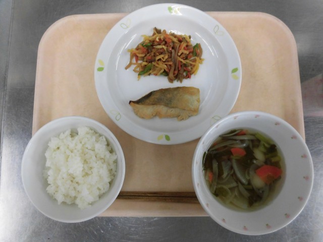 ごはん たらの西京焼き じゃがいものきんぴら 七草雑煮 牛乳