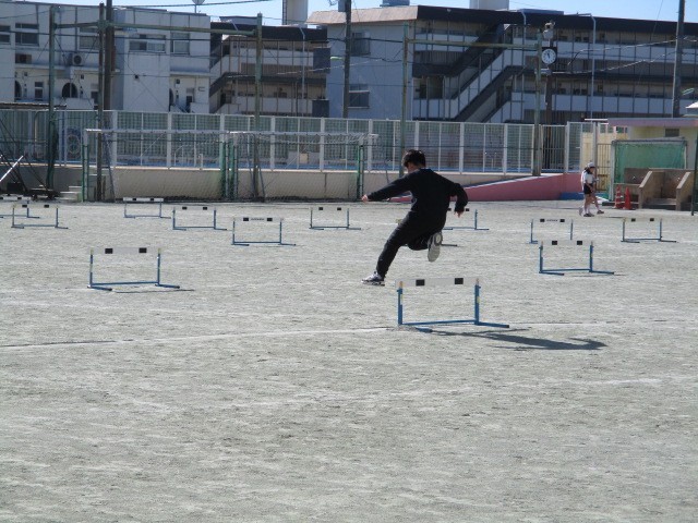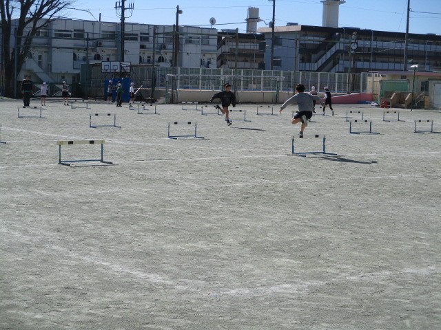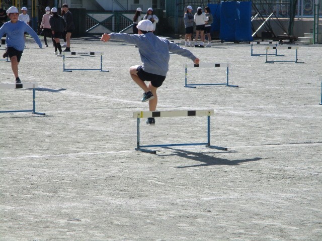 ハードル走~5年 公開日 2026/01/23 更新日 2026/01/23 今日のできごと 高学年の陸上運動の学習です。自己の記録の伸びや目標とする記録の達成を目指したりしながら、ハードルをリズミカルに走り越えることができるようにします~