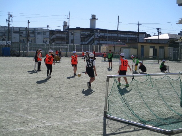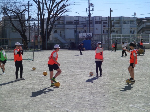 サッカーゲーム~6年 公開日 2026/01/23 更新日 2026/01/23 今日のできごと 高学年のボール運動の「ゴール型」の学習です。ボール操作とボールをもたないときの動きによる簡単なゲームに挑戦です~