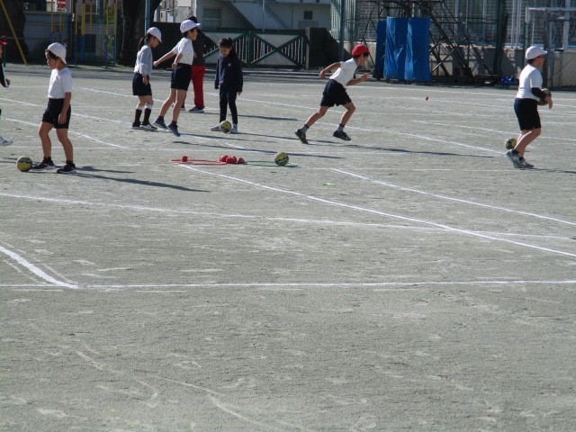 ボールゲーム~2年 公開日 2026/02/03 更新日 2026/02/03 今日のできごと 低学年のボールゲームの学習です~簡単なボール操作と、攻めや守りの動き動きによる易しいゲームに挑戦しました~