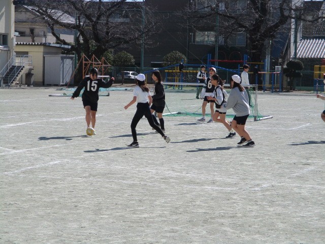 ボール運動~6年 公開日 2026/02/03 更新日 2026/02/03 今日のできごと 高学年の「ゴール型」のボール運動の学習です~ ボール操作とボールをもたないときの動きによる簡易化されたゲームに挑戦です~ 低学年と中学年での「ゲーム」の学習を踏まえ、高学年では集団対集団の攻防によって競争する楽しさや喜びを味わう学習をします。そして中学校の球技の学習につなげていきます~