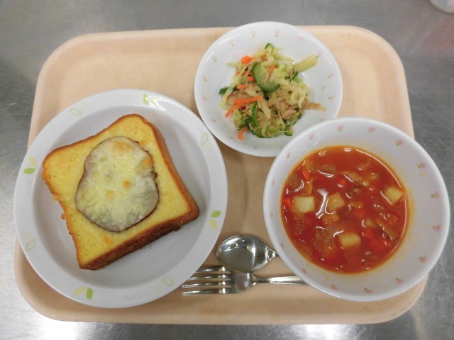 クロックムッシュ ツナサラダ ミネストローネ 牛乳