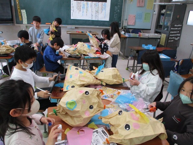 ぎゅっとしたい、わたしのお友だち~2年 公開日 2026/02/19 更新日 2026/02/19 今日のできごと 2年生の図工の学習です。紙袋を使って、オリジナルのわたしのお友だちづくりに挑戦しました~