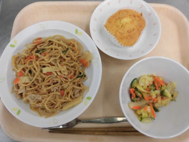 塩焼きそば 辣白菜 マドレーヌ 牛乳
