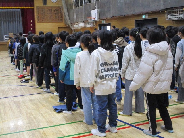 音楽朝会~ 公開日 2026/02/24 更新日 2026/02/24 今日のできごと 今日の朝は、1~5年生が体育館に参集して、来週行われる「6年生を送る会」で歌う合唱の練習をしました~すてきな歌での朝の幕開けは、とっても気持ちがよいですね・・・みんなの「ありがとう」の気持ちが、歌にのって6年生に届きますように!!