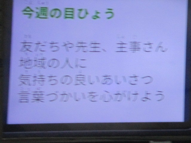 全校朝会~ 公開日 2026/03/02 更新日 2026/03/02 今日のできごと 放送を使って全校朝会を行いました~校長からは、3学期も残りわずかとなり、「グッデーグッバイ」の歌詞を紹介しながら、みんなで過ごした教室や友達にも「ありがとう」の気持ちを伝えようという話をしました~看護当番からは、今週の目標について伝えました~