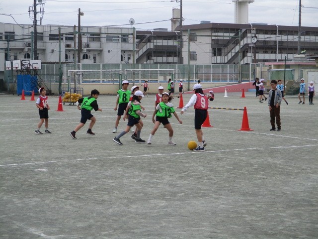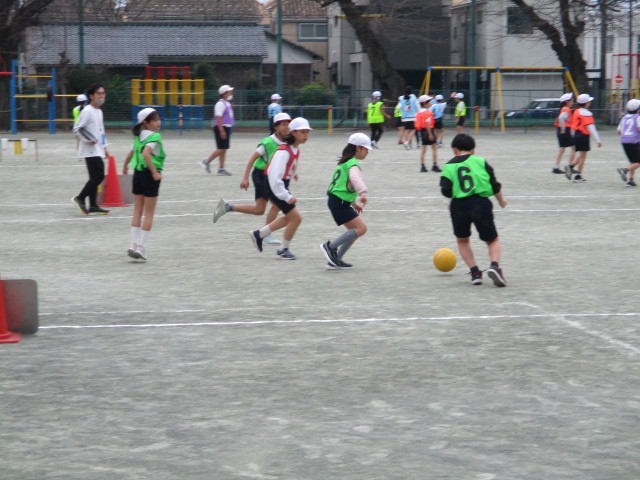 ゴール型ゲーム~4年 公開日 2026/03/20 更新日 2026/03/20 今日のできごと 中学根のゲームの学習です~作戦を選んだり、集団対集団で友達と力を合わせ競い合ったりする楽しさた喜びを味わう学習です~低学年の「ゲーム」の学習を踏まえ、ボール操作やボールをもたないときの動きによる「ゲーム」をし、高学年の「ボール運動」の学習につなげていきます~