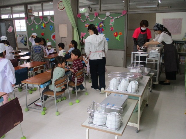 給食の時間の役割を分担してそれぞれが活動開始です~