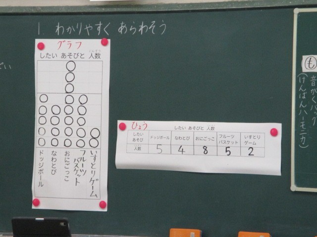 数量を観点を決め、分類整理し、グラフや一元表に表す学習が進んでいました~