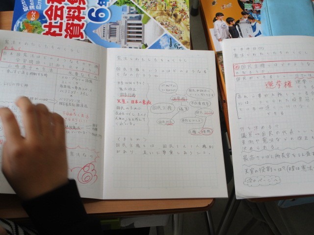 私たちのくらし~6年 公開日 2026/04/14 更新日 2026/04/14 今日のできごと 社会科の学習です~学習問題を追究・解決するために、意欲的に調べ、多角的に考え、それらを表現する主体的な学習態度も育てています~ノートにもしっかり学習のあしあとが残っていましたね・・・