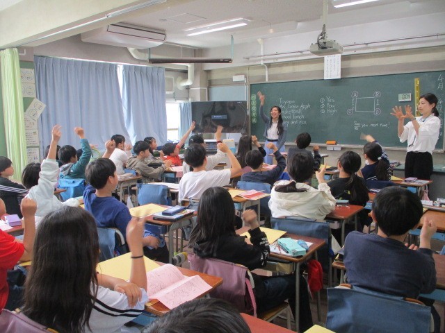 外国語~6年 公開日 2026/04/14 更新日 2026/04/14 今日のできごと 英語の先生とALTの先生と一緒に外国語の活動です~楽しく活動が展開中~6年生の英語担当の先生は、用賀中学校でも英語を教えている先生ですよ~中学校に進学したら、また一緒に学習できる楽しみがありますね・・・・