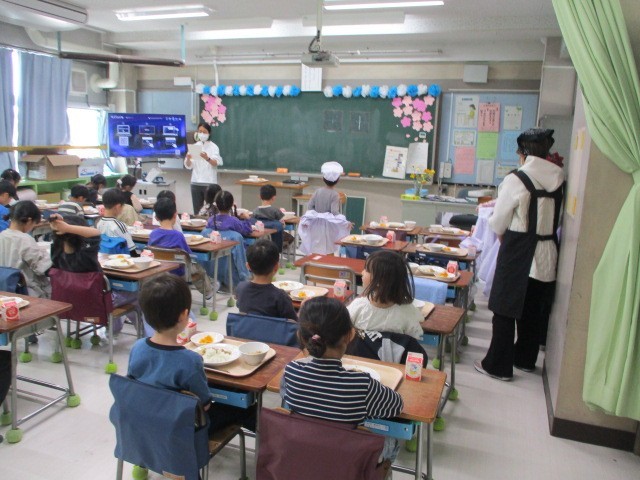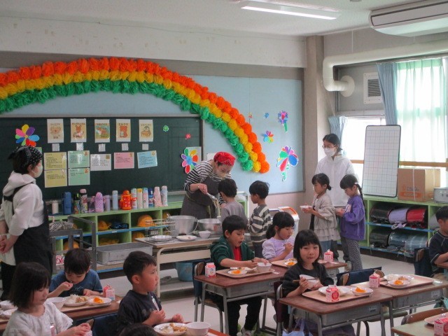 給食サポーター活動中~ 公開日 2026/04/17 更新日 2026/04/17 今日のできごと 1年生の教室です~みんなが楽しみにしている給食の時間の準備がずいぶん早くなりましたね・・・みんなで「いただきま~す」のご挨拶・・・給食サポーターの皆様、本日も活動を支えてくださり、ありがとうございます!!
