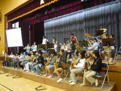 最初に「島唄」の金管演奏をした後、クラブで使っている楽器の紹介がありました。